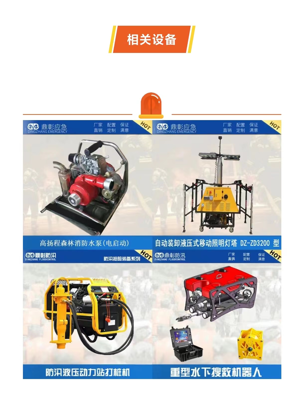 泵站與相關設備是防汛中重//要的一部分。在洪澇災害發生時,為了將積水泵出,保護受災地區的安//全,需(xū)要/大量的(de)泵(bèng)站和抽水設備如汽(柴)油機泵、打樁機、浮艇泵、高(gāo)揚程潛(qián)水泵、潛汙(wū)泵、移(yí)動式排水發電照明泵站等。泵站可(kě)根據洪水情況進(jìn)行合理調度,將積水(shuǐ)泵到其他地區或河道,減輕洪澇(lào)災害的影響。還需要配備一些應急搶險救援車(chē)輛和器(qì)械,如搶險救援船隻、橡(xiàng)皮艇、無人偵測船、水下機器人等,方(fāng)便救援被困群眾和轉移受災群眾。