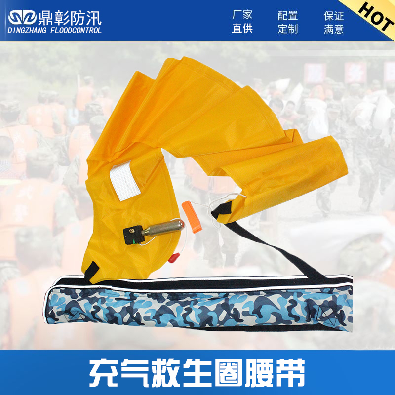 充氣救(jiù)生腰帶氣脹後:自動型的(de)會在5秒鍾內(nèi)成馬蹄形或棒形救生圈,圍在落水者的腰間,讓落水者浮在(zài)水麵上,起到救(jiù)生的作用(yòng)(手(shǒu)動型手拉充氣)浮力超過9公斤,將人體浮於水麵(miàn)去救生