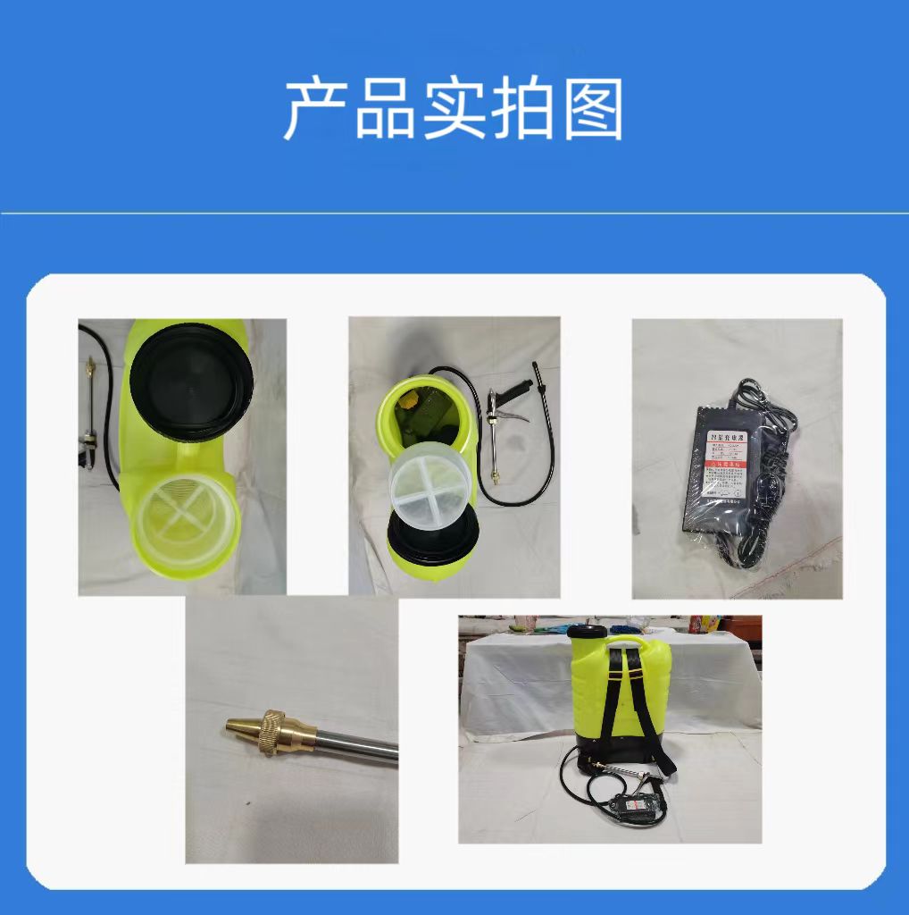 3、電池與電動水泵(bèng)分(fèn)布在水桶下麵,有過濾網,背帶有調節功能;