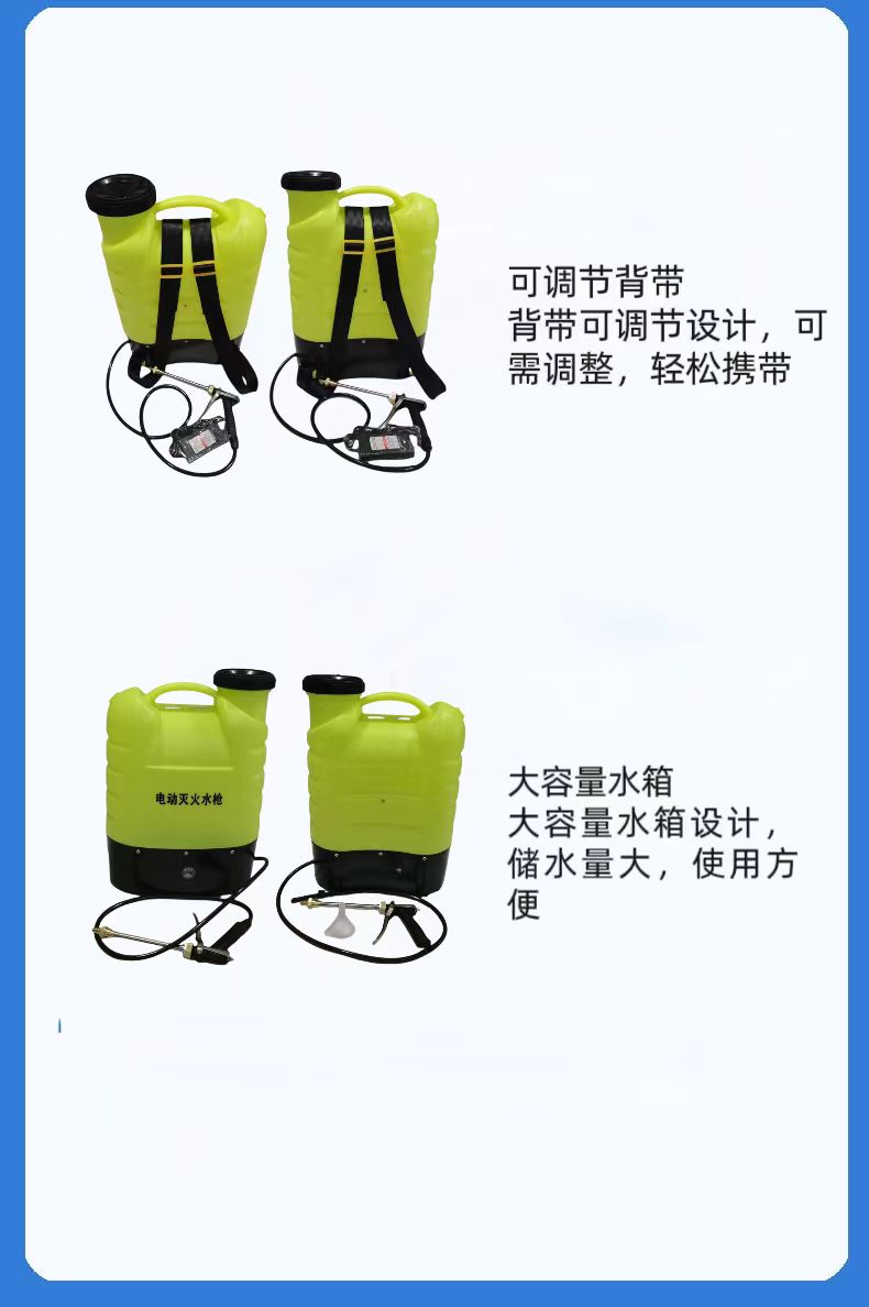 以上就是小編為大家介紹的森林消防電(diàn)動滅火水槍背負(fù)式電動滅火水槍的全部內容,如果大家還對相關的內容感興趣,請持續關注河北91香蕉视频安防設備科技有限公司